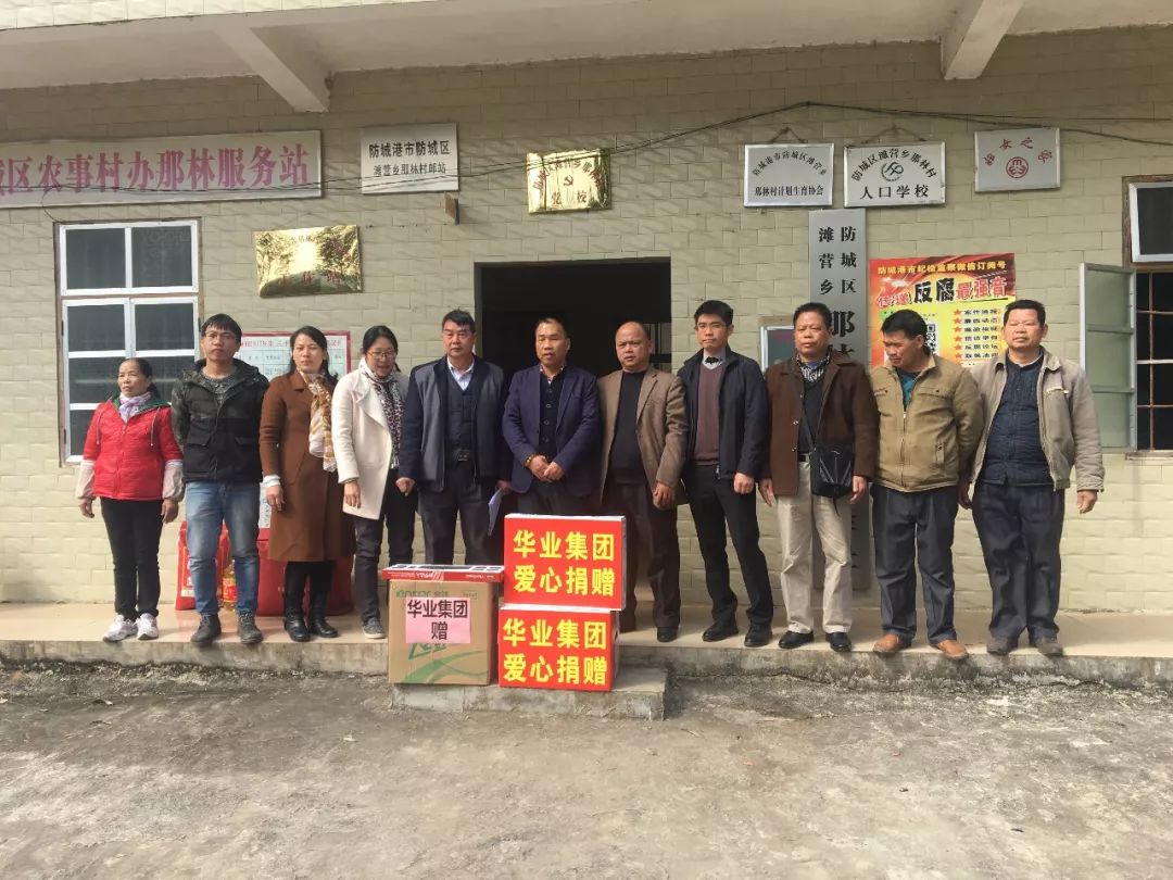 2020年2月15日,廣西華業投資集團副總裁廖人興、工會主席鐘麗霞代表華業集團在華業汽車城慰問連日來奮戰在防城港市第一人民醫院感染性疾病科應急負壓病房項目建設一線的員工,為他們送去牛奶、水果等慰問品和防護用..