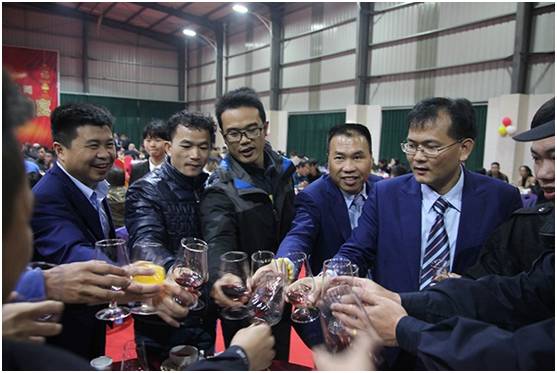 答謝晚宴現場氣氛熱烈,大家舉杯共慶, 集團董事長龍其生、總裁龍其偉向大家敬酒,表示感謝。