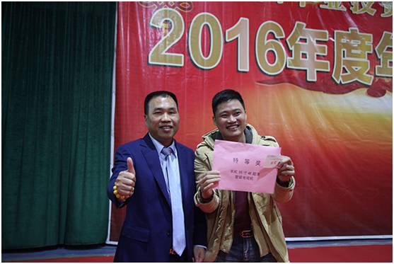 今年,集團設置了年度特等獎一名,獎品為價值6000元的長虹55寸64位4K超清智能電視機一臺,龍其偉總裁揭曉特等獎,獲獎者為建筑公司經營部同事李和金,這是他第二個年度贏得電視機了,幸運之神特別眷顧他!