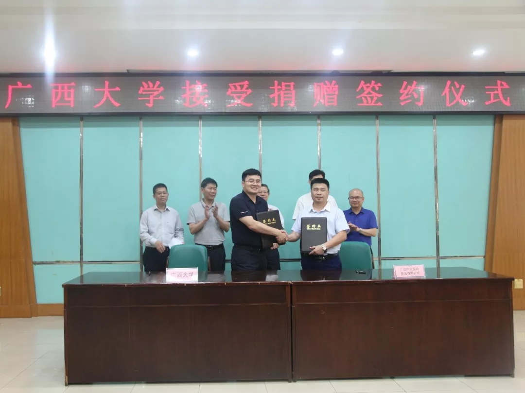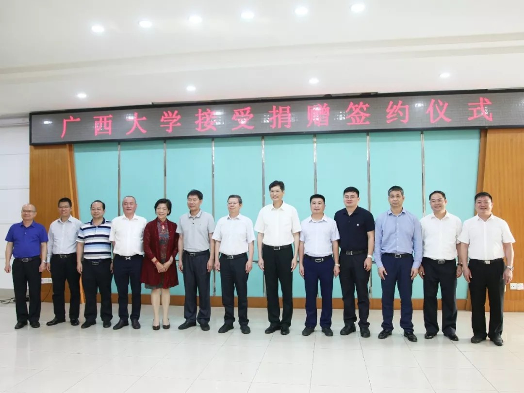2018年5月4日,在廣西大學(xué)90周年校慶即將到來(lái)之際,廣西華業(yè)投資集團(tuán)與廣西大學(xué)舉行捐贈(zèng)簽約儀式及接受捐贈(zèng)儀式。自治區(qū)政協(xié)副主席、廣西大學(xué)黨委書(shū)記劉正東,防城港市政協(xié)主席趙發(fā)旗、防城港市政協(xié)副主席、廣西大學(xué)防城港校友會(huì)會(huì)長(zhǎng)彭景東,華業(yè)集團(tuán)董事長(zhǎng)龍其生、副總裁龐樹(shù)玉、工會(huì)主席鐘麗霞等領(lǐng)導(dǎo)出席了儀式。