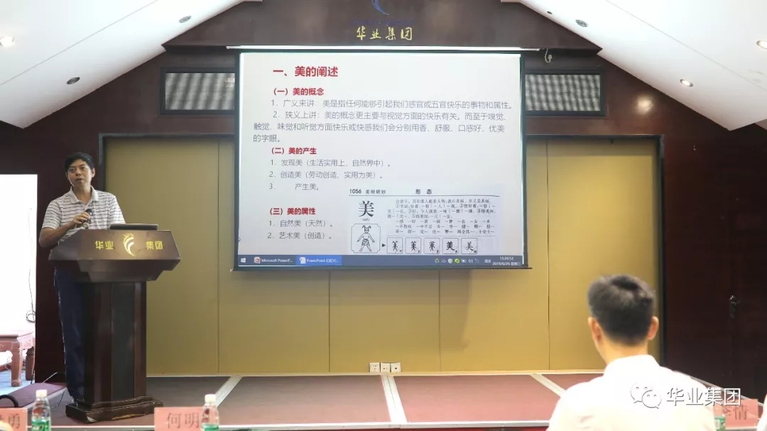 黨課上,何秘書長為華業集團黨員和員工講授了《從中西美術對比堅定中國文化自信》主題黨課,華業集團副總裁熊昭斐、財務總監李情、工會主席鐘麗霞等領導以及集團全體黨員和部分行政員工參課。