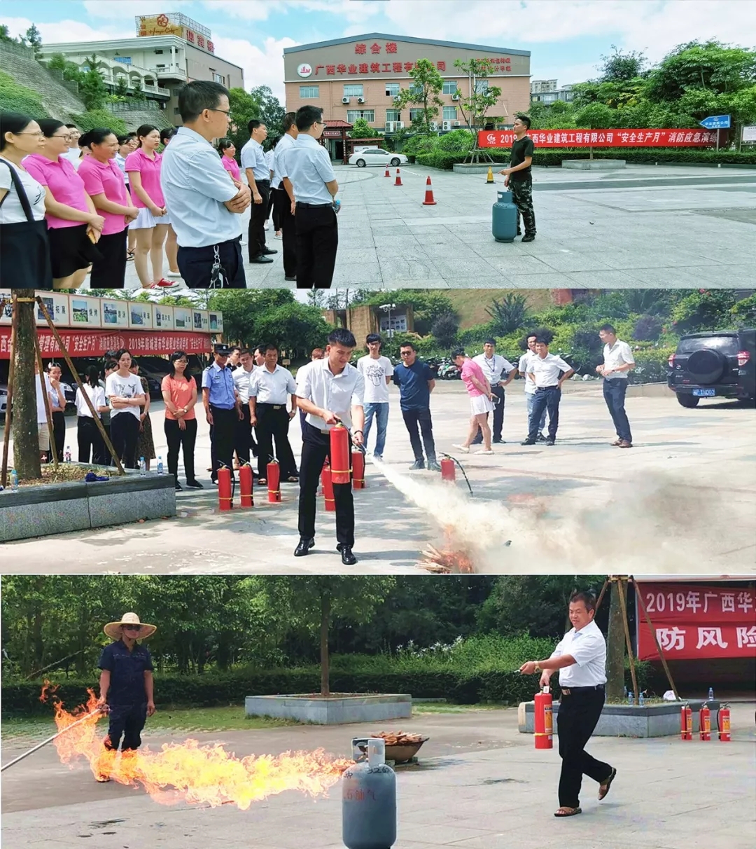 為開展好2019年“安全生產(chǎn)月”活動,突出營造“防風(fēng)險、除隱患、遏事故”的濃厚氣氛,同時也為了更好地做好公司安全生產(chǎn)工作,提高員工對安全生產(chǎn)意外事故的應(yīng)急處置能力,增強應(yīng)急隊伍的協(xié)調(diào)性、組織性和操作能力,公司于2019年6月28日上午在華業(yè)城舉行了安全生產(chǎn)活動月安全知識講座和消防演練活動。此次活動得到了防城區(qū)消防大隊的大力支持,并派出了韋安學(xué)等教官親臨華業(yè)城舉行安全知識講座與消防應(yīng)急演示,集團公司、建筑公司、金花茶酒店、培訓(xùn)學(xué)校等員工一同參加了此次活動。