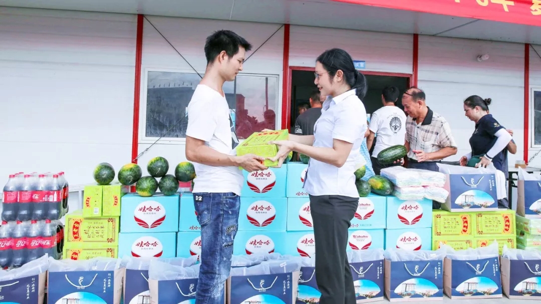 炎炎夏日,酷暑難當。為了確保施工項目工地員工清涼工作、安全度夏,創造一個清涼愉悅的工作環境,7月18日當天,集團工會主席鐘麗霞代表公司為防城港市保稅物流中心(B型)項目部的員工送去一批清涼飲品。一片冰鎮的西瓜、一瓶清涼的飲料,把“涼爽”送到了每位一線員工的“心”上。切實把關心員工生活、關注員工健康工作落實到實處,為大家安全度夏提供有力的后勤保障。