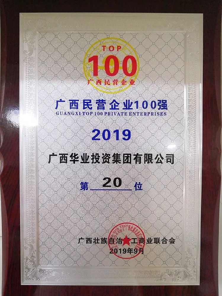 喜訊丨華業(yè)集團榮獲“2019廣西民營企業(yè)100強”,位列第20名!