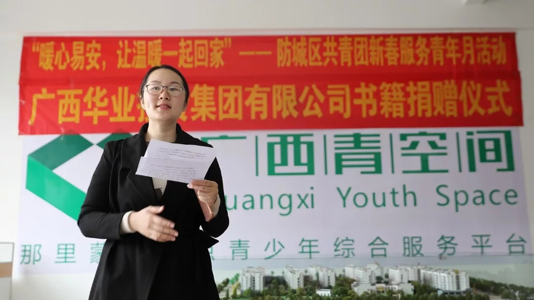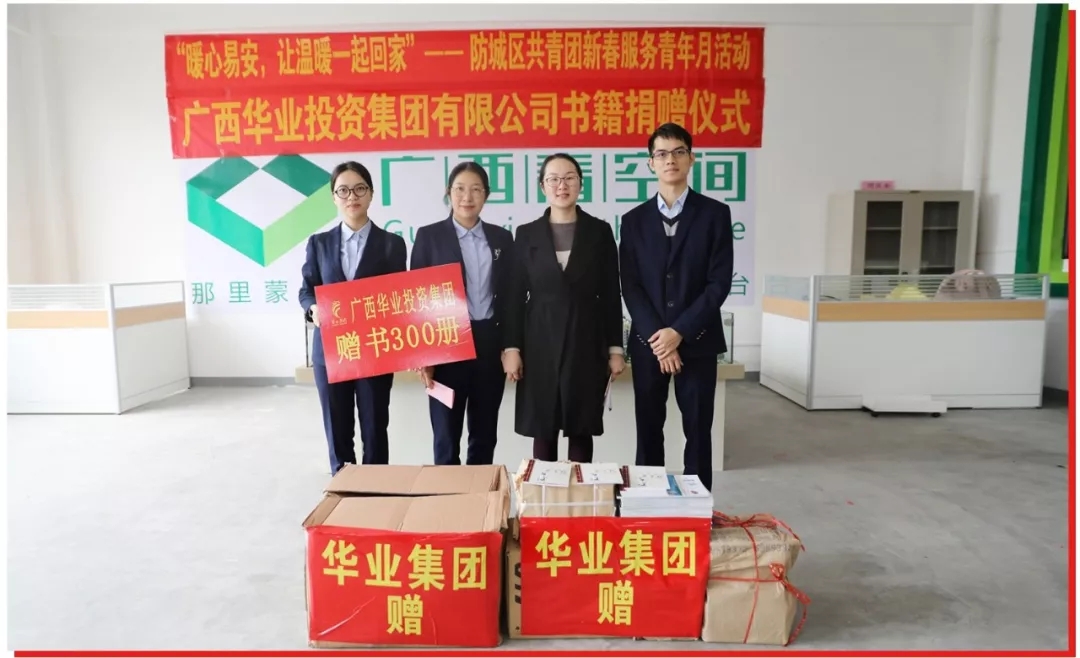 2020年1月15日,華業集團到防城區水營街道那里蒙易地扶貧搬遷安置點開展“暖心易安,讓溫暖一起回家”主題便民利民惠民服務活動。活動由共青團防城區委員會、廣西華業投資集團有限公司主辦,防城區水營街道、防城港市愛心志愿者協會協辦。華業集團工會主席鐘麗霞帶隊參加了活動,并代表華業集團向那里蒙安置點青少年服務平臺捐贈有益書刊300余冊。
