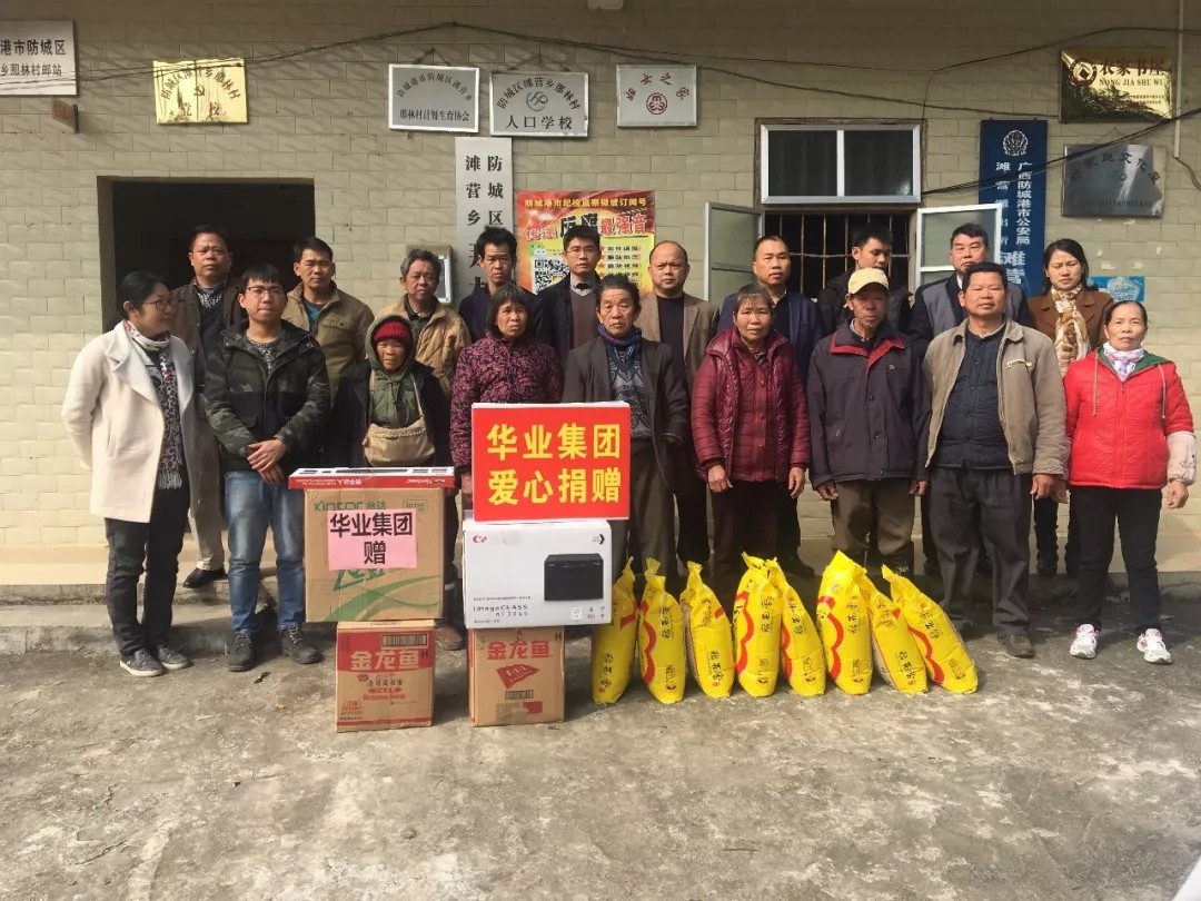 2018年2月6日,廣西華業(yè)集團攜手防城區(qū)工商聯到灘營鄉(xiāng)那林村,開展貧困村、貧困戶和扶貧村委干部慰問活動。防城區(qū)工商聯主席陳如海,區(qū)委統戰(zhàn)部副部長、工商聯黨組書記鐘憲棠和廣西華業(yè)投資集團總裁龍其偉、工會主席鐘麗霞一行參加慰問活動,把溫暖帶到了灘營鄉(xiāng)那林村,給村委帶來嶄新的電腦和打印機,給貧困戶和村兩委干部送上了慰問物資和慰問金。