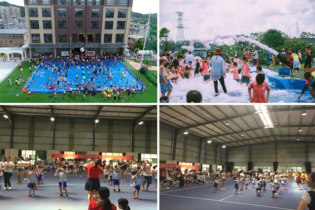 2018年6月1日上午,華業集團“歡樂六一,共同成長”兒童節親子活動暨2018年第二季度員工生日會在華業城迎賓樓金花茶廳舉行,杭州娃哈哈集團公司也走進華業城,與孩子們一起歡度“六一”。防城港金獅幼兒園、英華幼兒園等單位都來到華業舉行兒童節活動,華業城內處處洋溢著家長和孩子們爽朗的笑聲,儼然成為了一座童趣城堡。