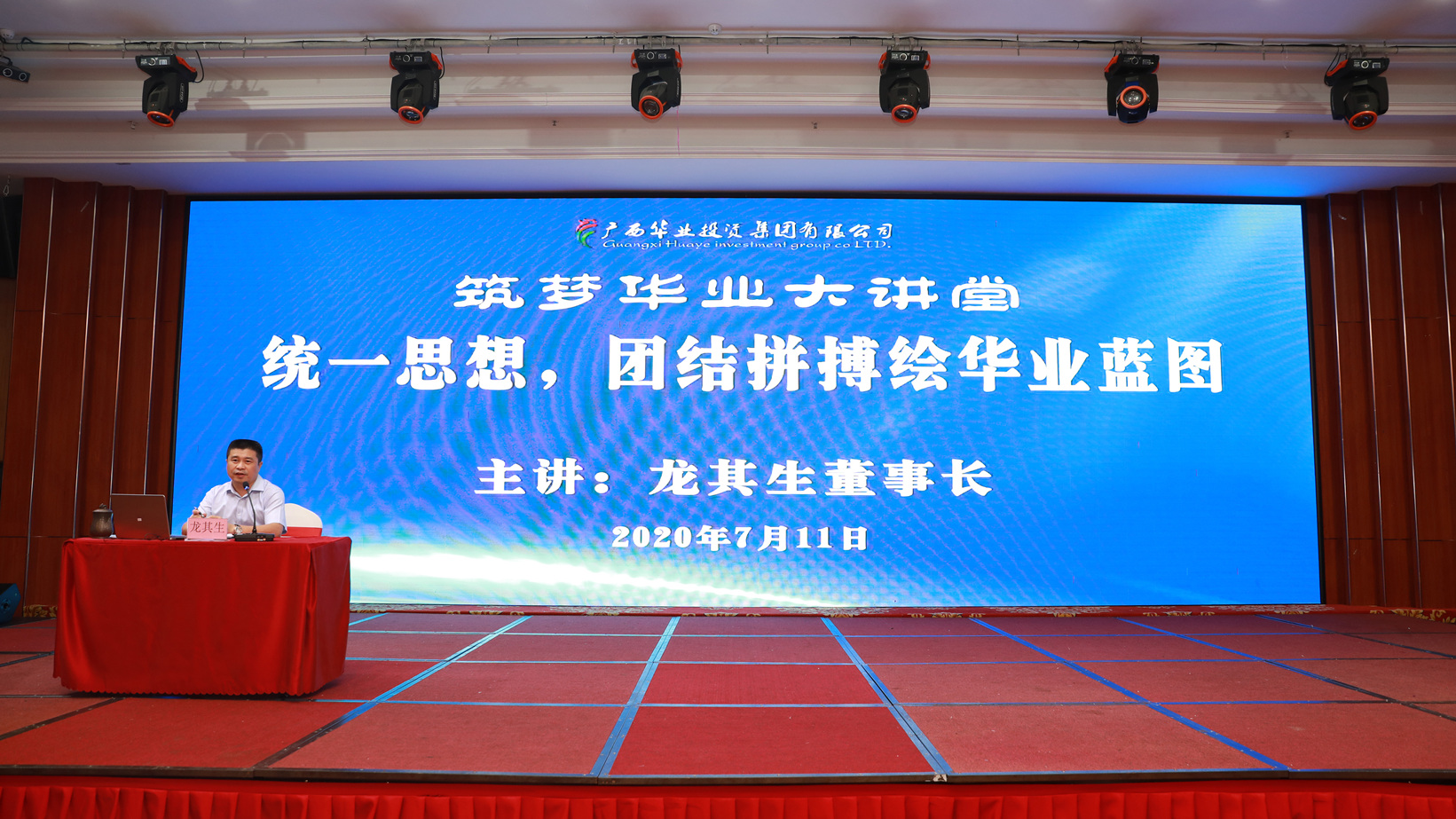 2020年7月11日,華業(yè)集團“筑夢華業(yè)大講堂”首期講堂拉開序幕,集團龍其生董事長為集團全體中高層領導講授了主題為“統(tǒng)一思想,團結拼搏繪華業(yè)藍圖”生動而精彩的一課。“筑夢華業(yè)大講堂”將打造為集團今后常態(tài)化開展的學習交流平臺。