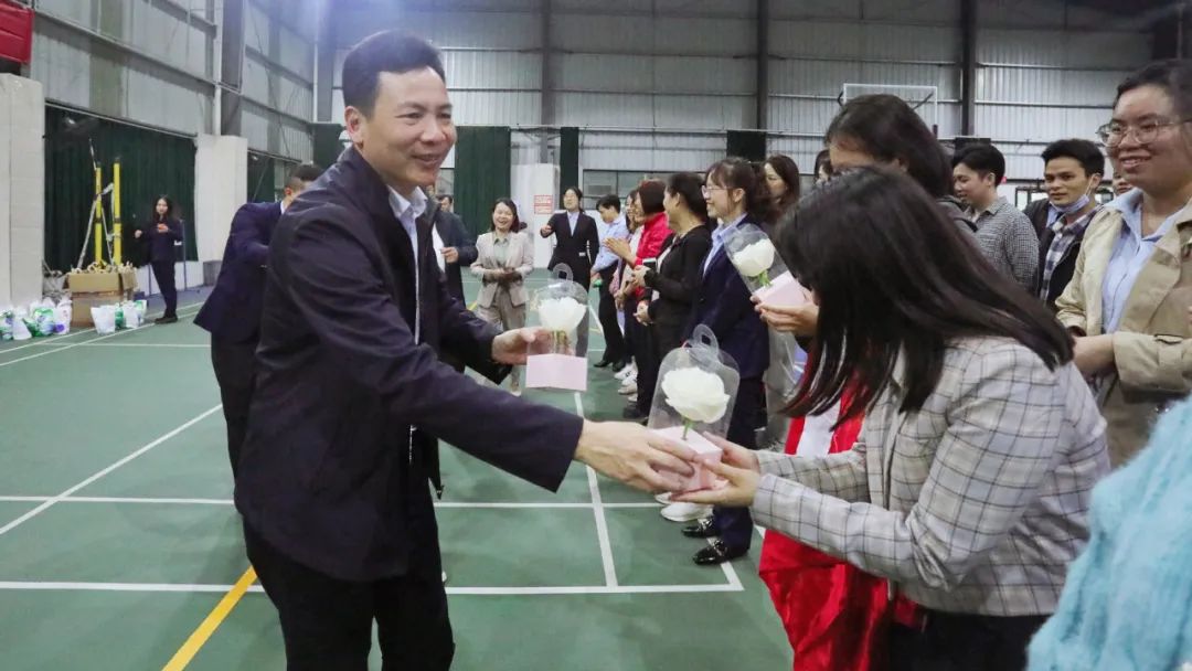 防城區人民政府代區長凌光振為參加活動的女同胞們贈送節日禮物