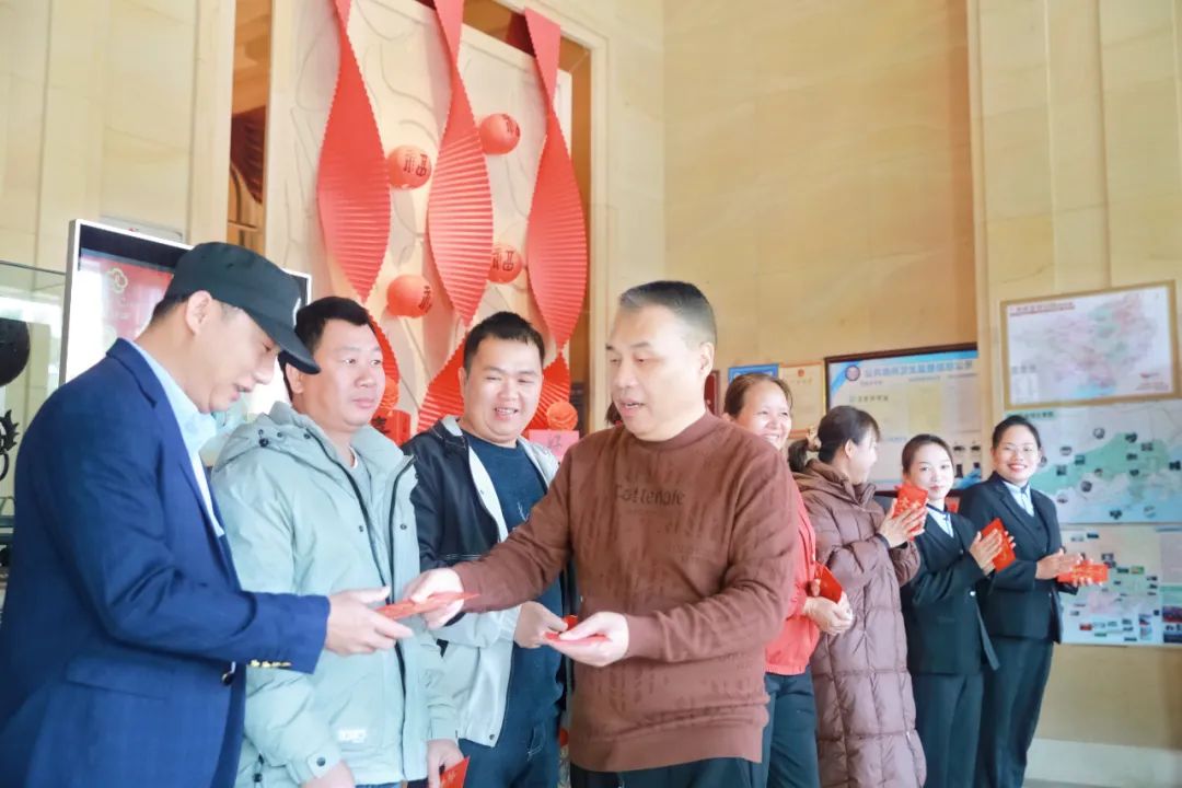 隨后,龍其偉總裁為每位值守員工送上新春慰問紅包,祝愿他們在新的一年里身體健康、工作順利、家庭幸福。