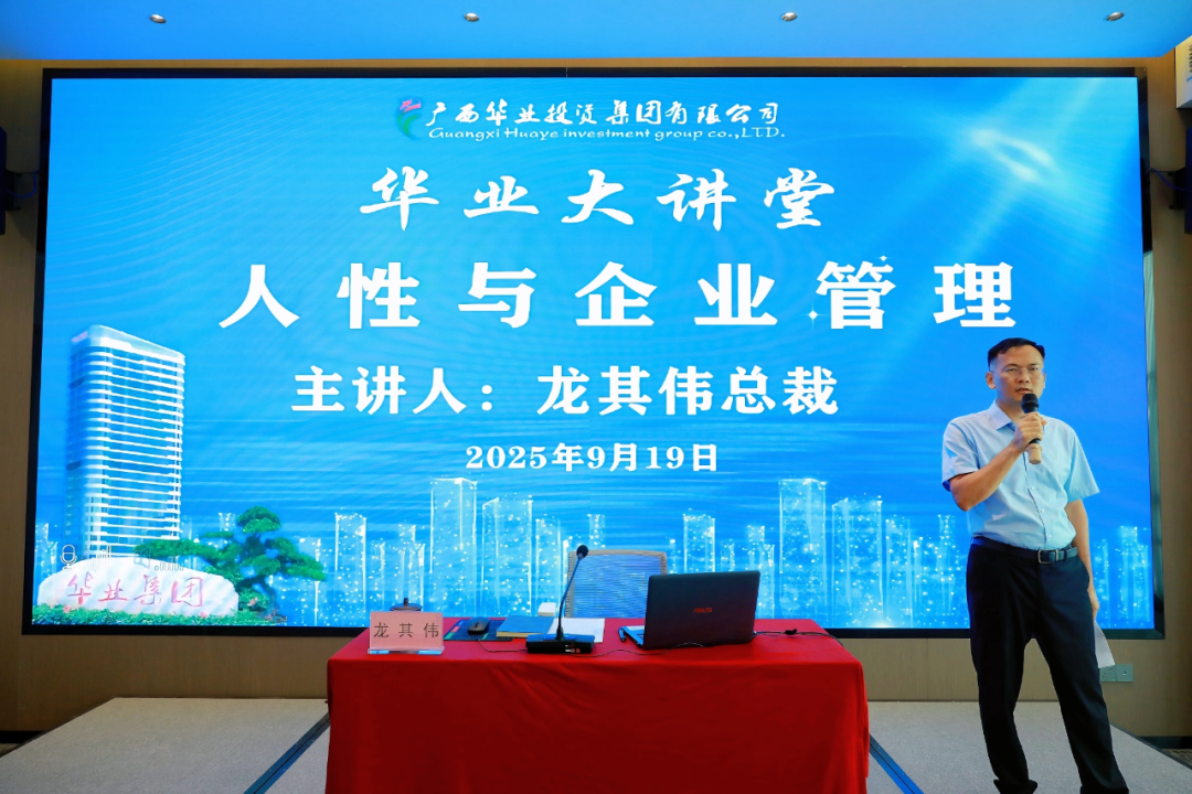 9月19日,廣西華業投資集團有限公司在華業大廈24樓會議室成功舉辦2025年第四期“華業大講堂”主題培訓活動。集團董事長龍其生、總裁龍其偉、副總裁廖人興、龐樹玉(黨委書記)、熊昭斐等中高層領導及員工代表共計291人參加。本次活動由集團副總裁廖人興主持,同步設立集團南寧主會場與北部灣、粵港澳、華業龍輝、盛萬事等多個視頻分會場。