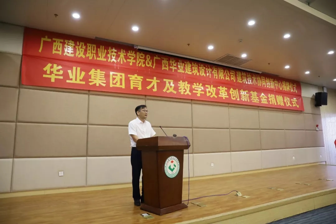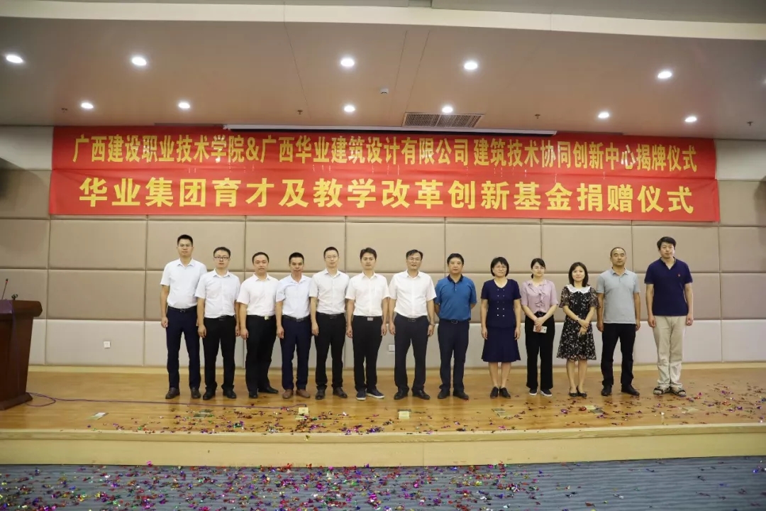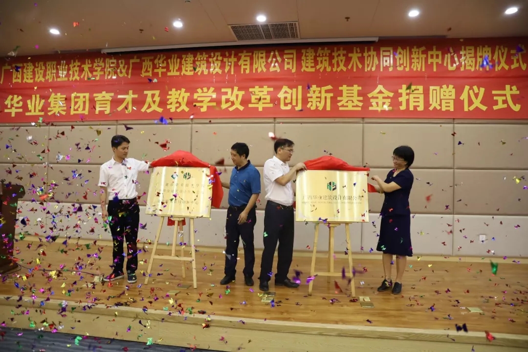 廣西華業投資集團育才及教學改革創新基金捐贈暨廣西建設職業技術學院&廣西華業建筑設計有限公司建筑技術協同創新中心揭牌儀式順利舉行