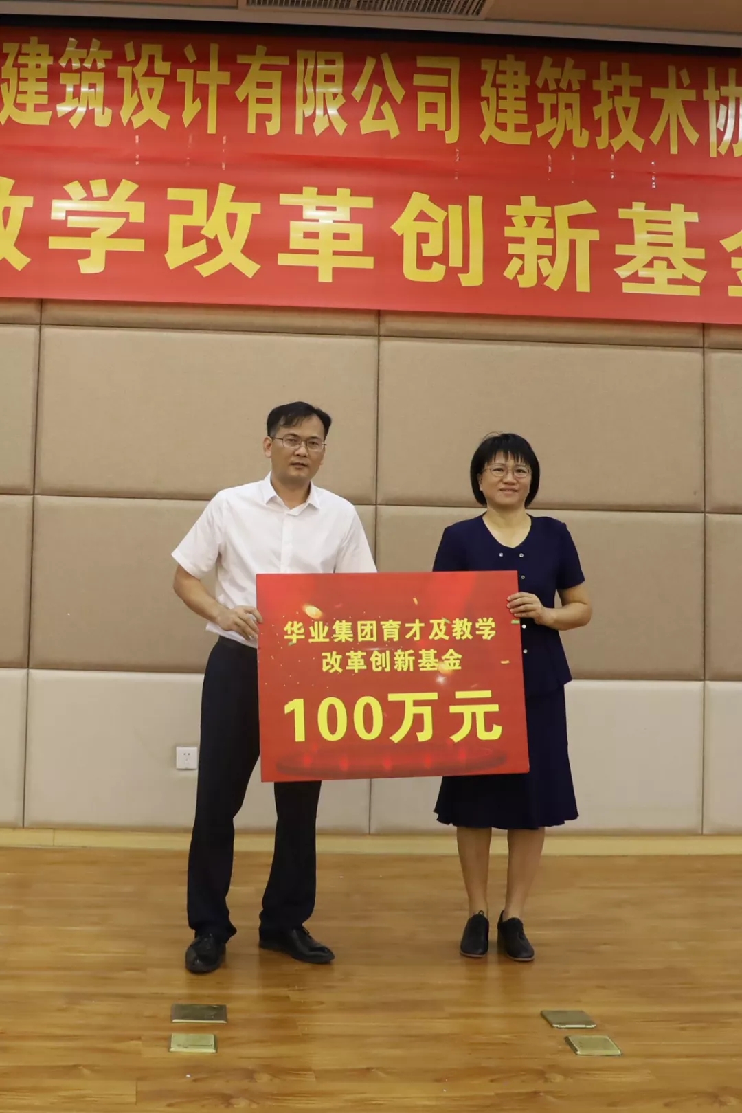 隨后,廖人興副總裁代表華業集團向廣西建設職業技術學院捐贈100萬元人民幣設立華業集團育才及教學改革創新基金,廣西建設職業技術學院土木工程系主任姚琦代表學院接受捐贈,并對華業集團慷慨解囊表示衷心感謝。華業集團育才及教學改革創新基金的設立,充分體現了華業集團對深入開展校企合作、精準落實教育教學改革、培養專業型人才的堅定決心和信心。